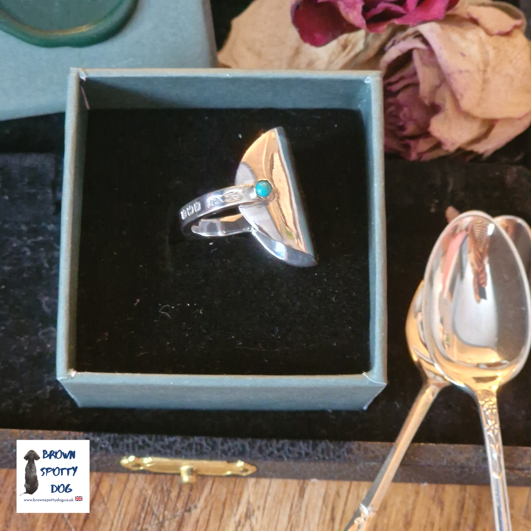 Birmingham 1926 Silver Spoon Ring with a 14ct Gold Set Turquoise Stone