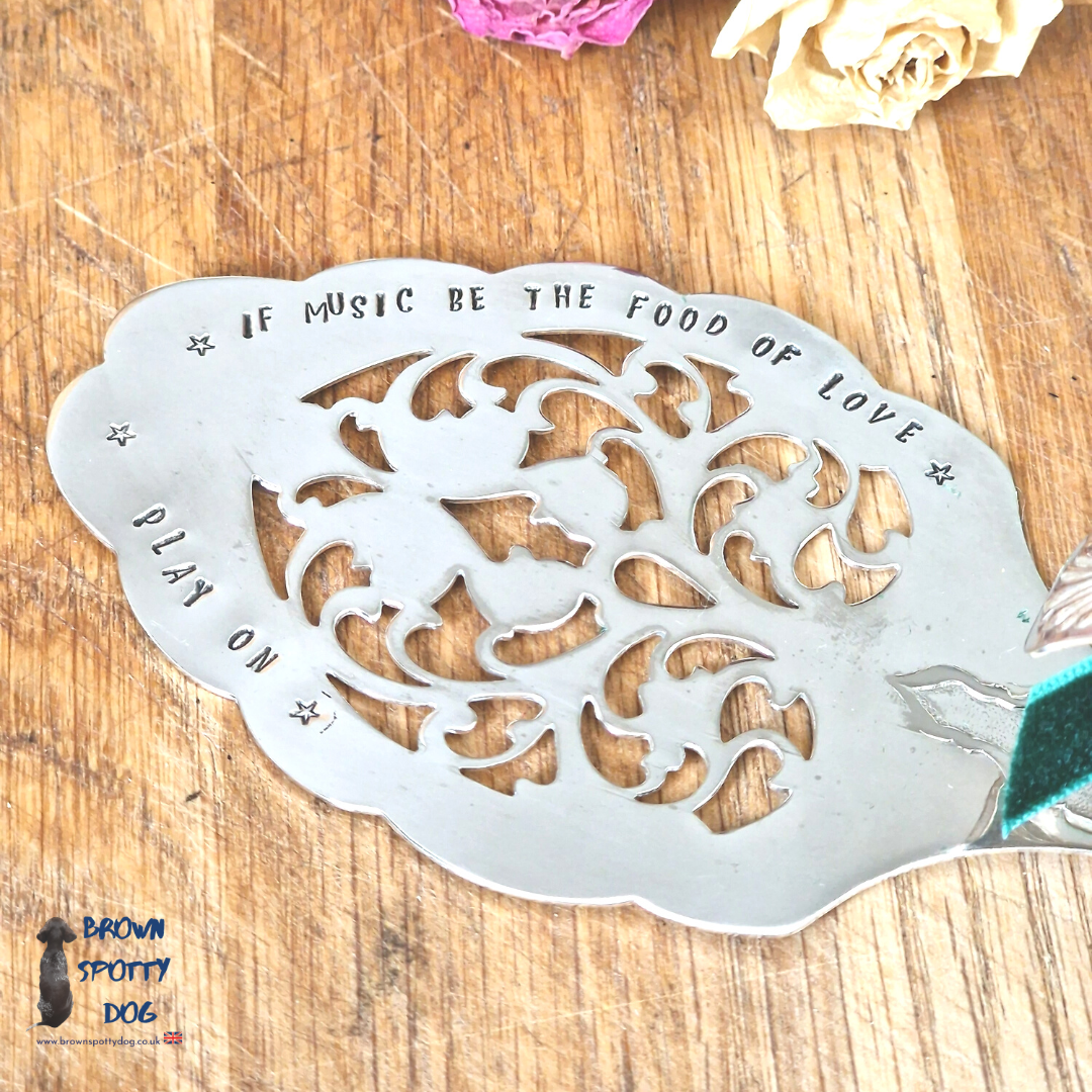Silver Plate Vintage Cake Slice, tied with a racing green velvet ribbon.